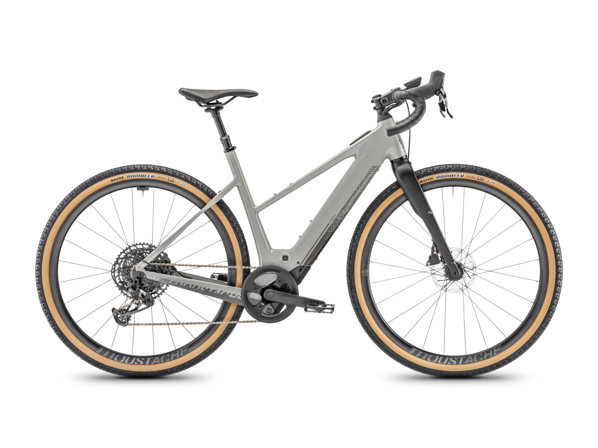 MOUSTACHE Samedi Dimanche 29.4 Open je všestranný gravel e-bike se sníženou horní rámovou trubkou, výkonným motorem Bosch a kvalitními komponenty, ideální pro dobrodružné jízdy v terénu i bezpečnou jízdu ve městě.
